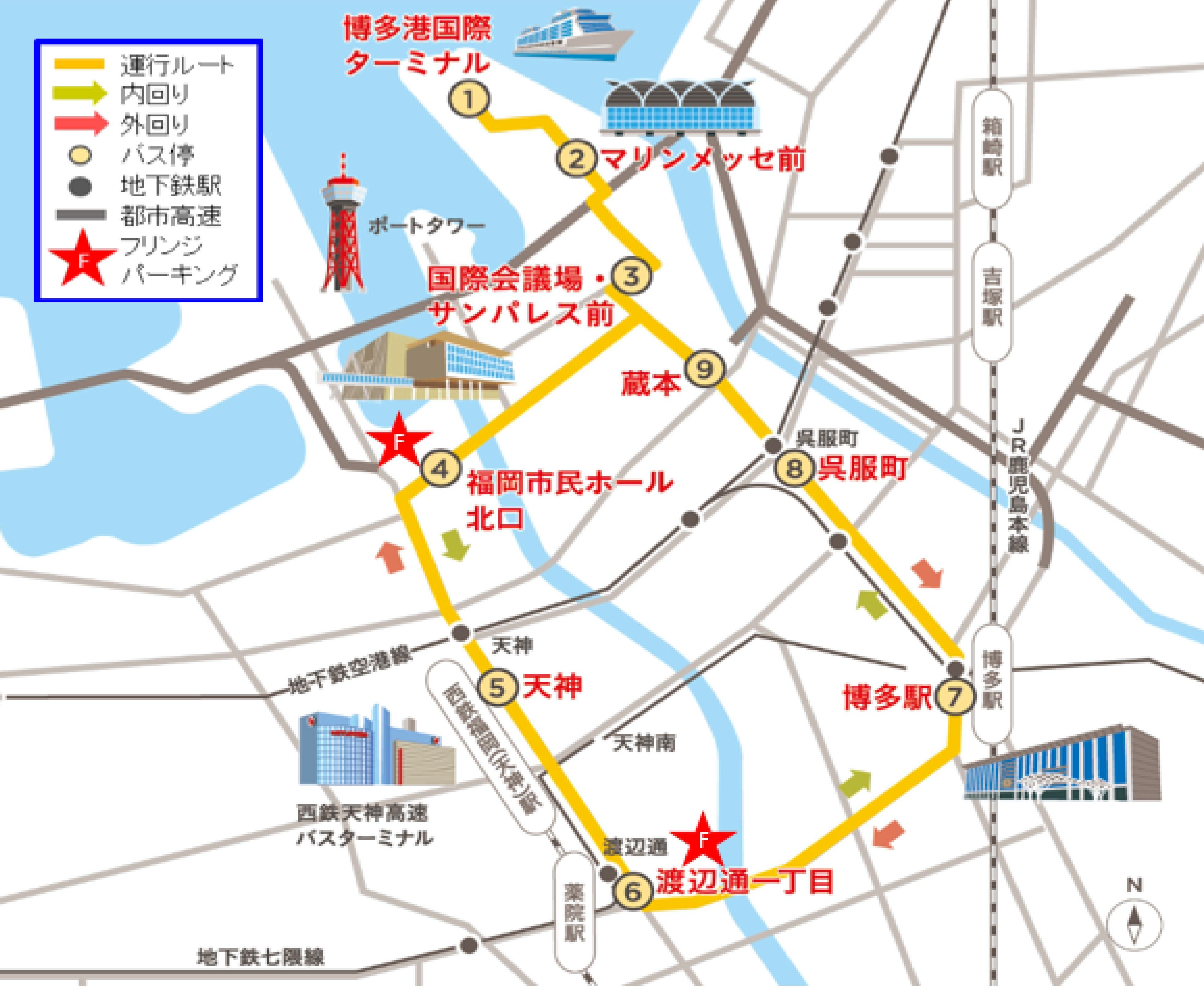 天神・博多・ウォーターフロント地区を循環運行!