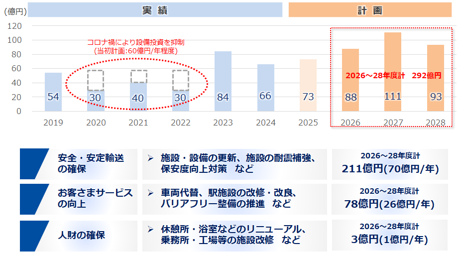 安全・安定輸送の確保【 2026~2028年度:計211億円(70億円/年) 】