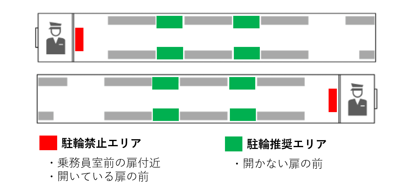〇乗務員室出入口付近への駐輪は禁止いたします。